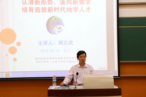 5月22日下午3:00,我院在沙河校区教1-521举办2017级新生引航系列讲座。本次讲座邀请国家能源集团地质勘查责任有限公司总工程师周正武为我院师生做了题为“认清新形势,面向新需求,培育造就新时代地学人才”的学术讲座。学院党委副书记杨向东,17级辅导员胡媛、邵克俭及地质类专业学生参加了本次讲座。