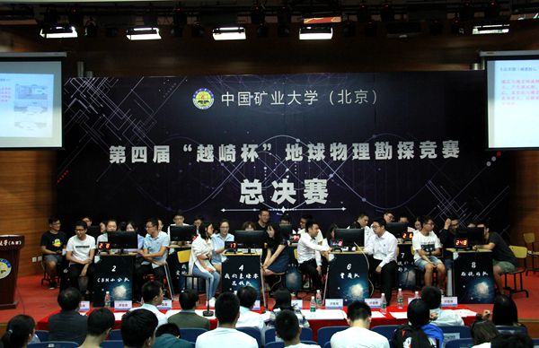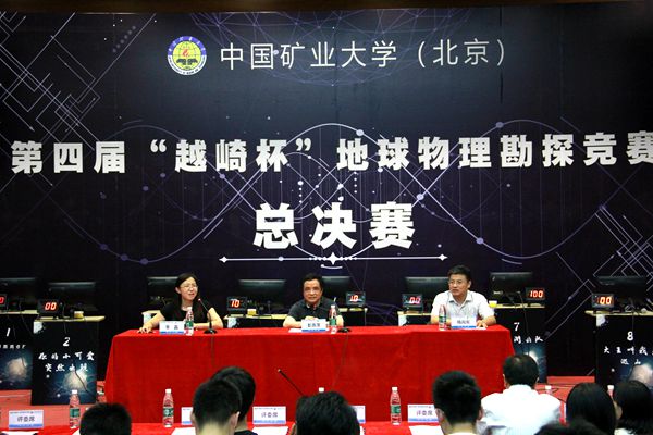 2018年6月6日晚6点,中国矿业大学(北京)第四届“越崎杯”地球物理勘探竞赛总决赛在民族楼407礼堂圆满举行,中国工程院院士彭苏萍、地测学院院长唐跃刚、副院长邵龙义、李晶、党委副书记杨向东、地球物理与信息系朱国维、邹冠贵、师素珍、何登科、卢勇旭、许娜、学院团委书记乔志勇、辅导员胡媛、王尧葵、陈东锐和信延儒等出席了本次总决赛。